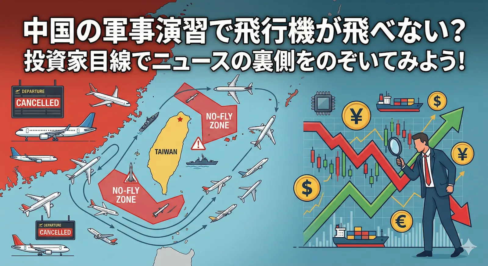 中国の軍事演習で飛行機が飛べない?投資家目線でニュースの裏側をのぞいてみよう!