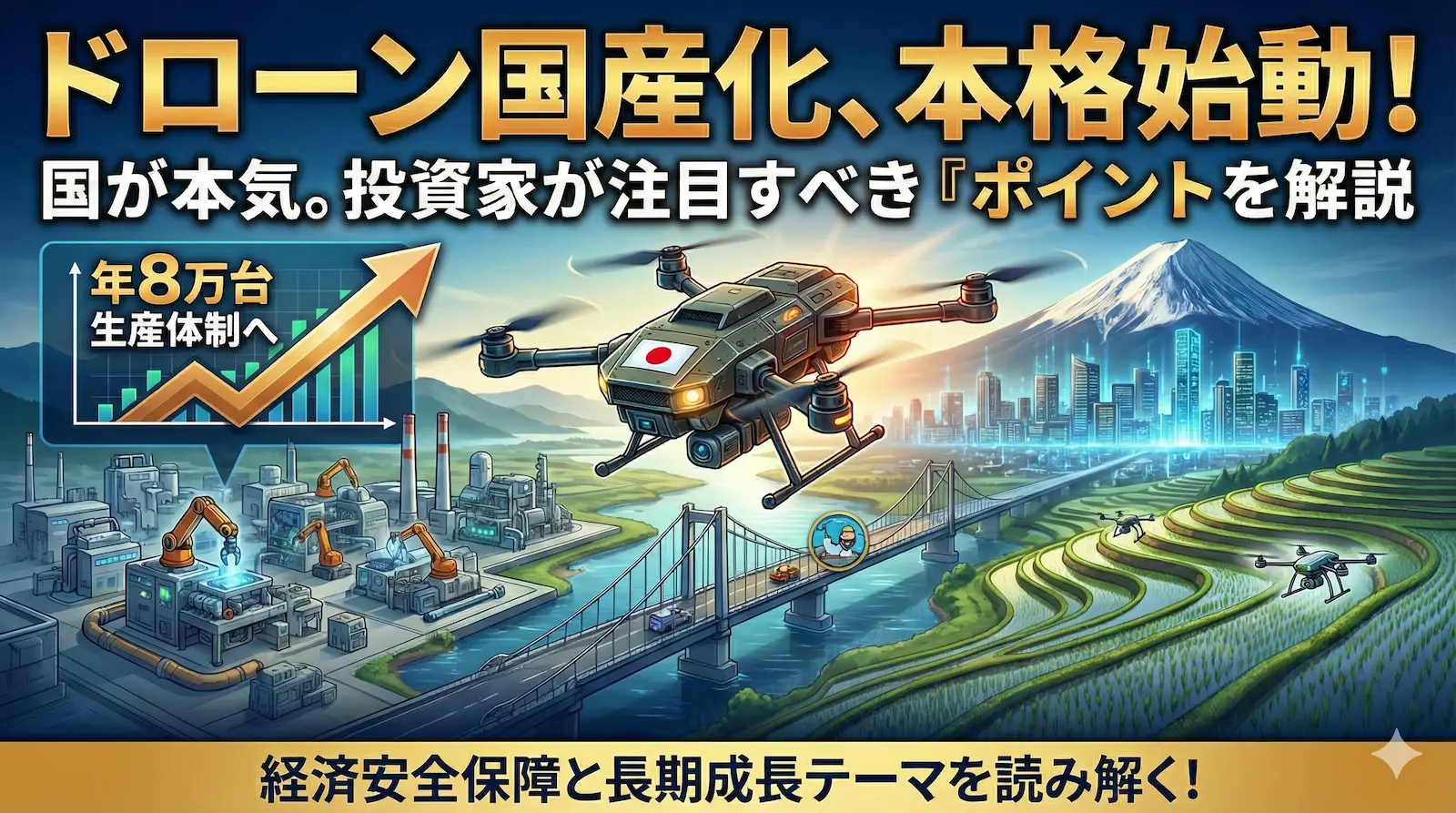 今回のドローン国産化支援は、「派手なニュースではない」「短期で株価が跳ねる話でもない」でも、国が本気で支える、息の長いテーマ です。