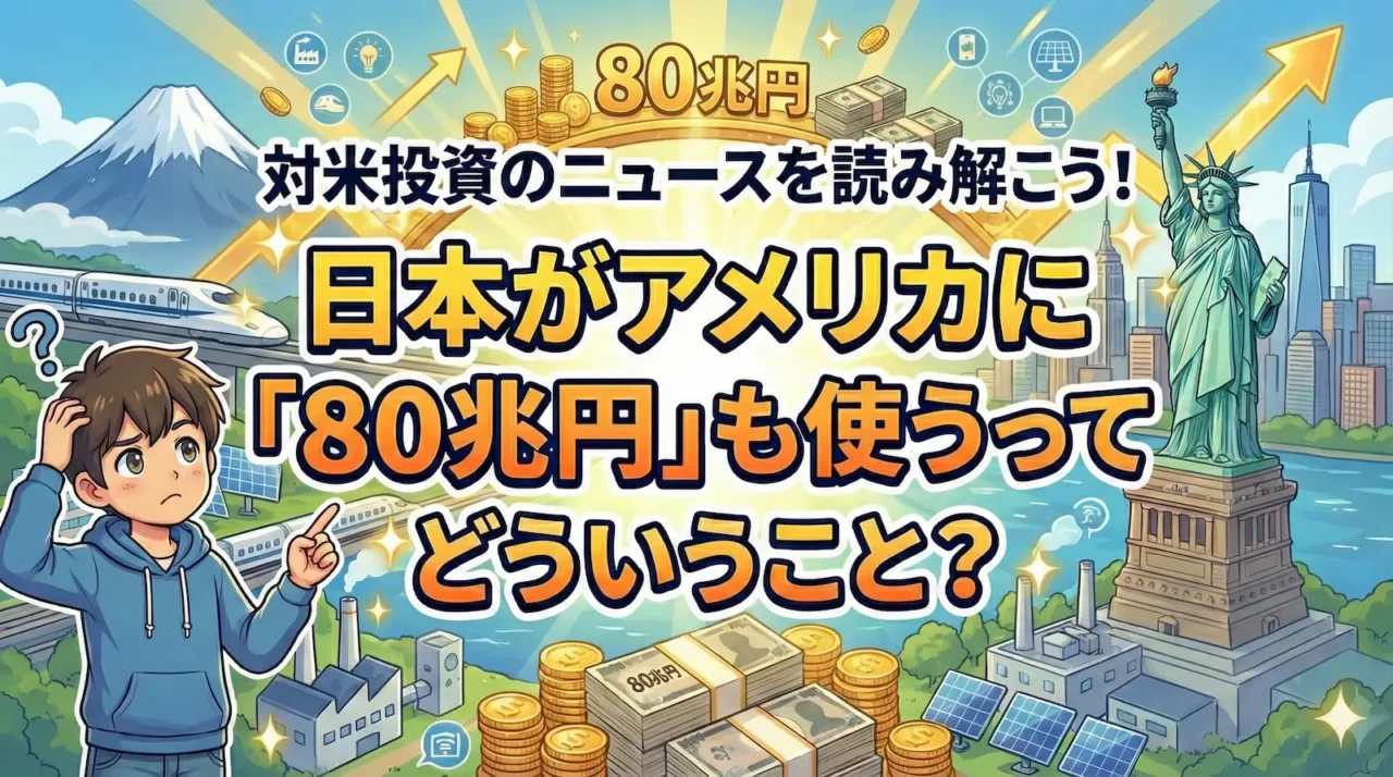 こんにちは!今日はニュースで話題になっている「対米(たいべい)投資」について、投資を始めたばかりの人や、お子さんでもわかるようにやさしく解説します。 「80兆円…