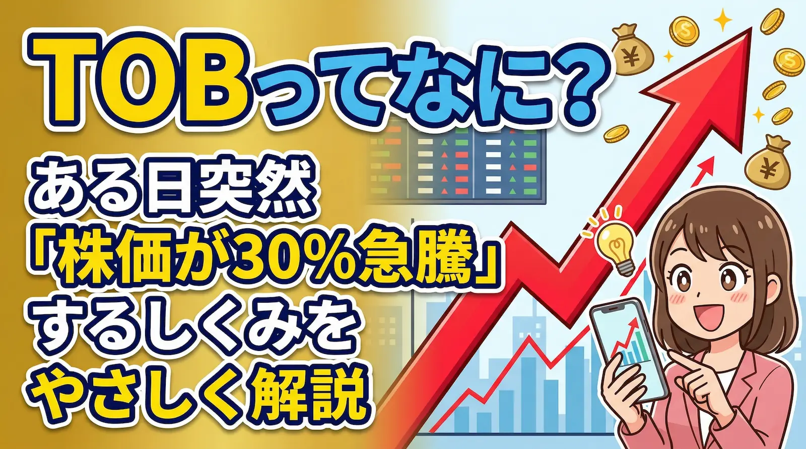 TOBはニュースで突然登場して、一瞬で株価を大きく動かします。「知っているか・知らないか」で投資家としての判断スピードが大きく変わる、まさに投資の世界の醍醐味(だいごみ)の一つです。